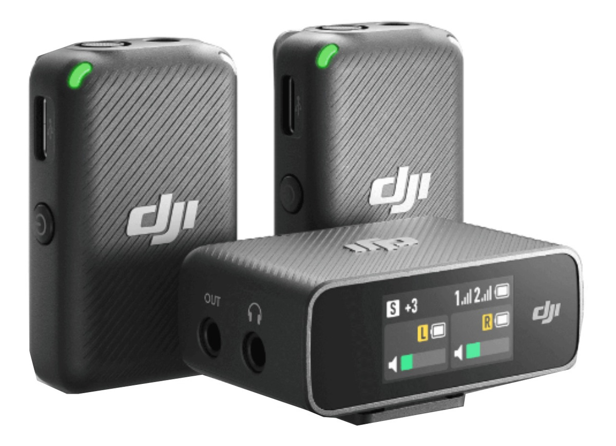 O Microfone DJI conta com dois transmissores com microfones integrados. Ambos suportam áudio omnidirecional, sendo ideais para entrevistas com várias pessoas e gravações em estúdios pequenos.